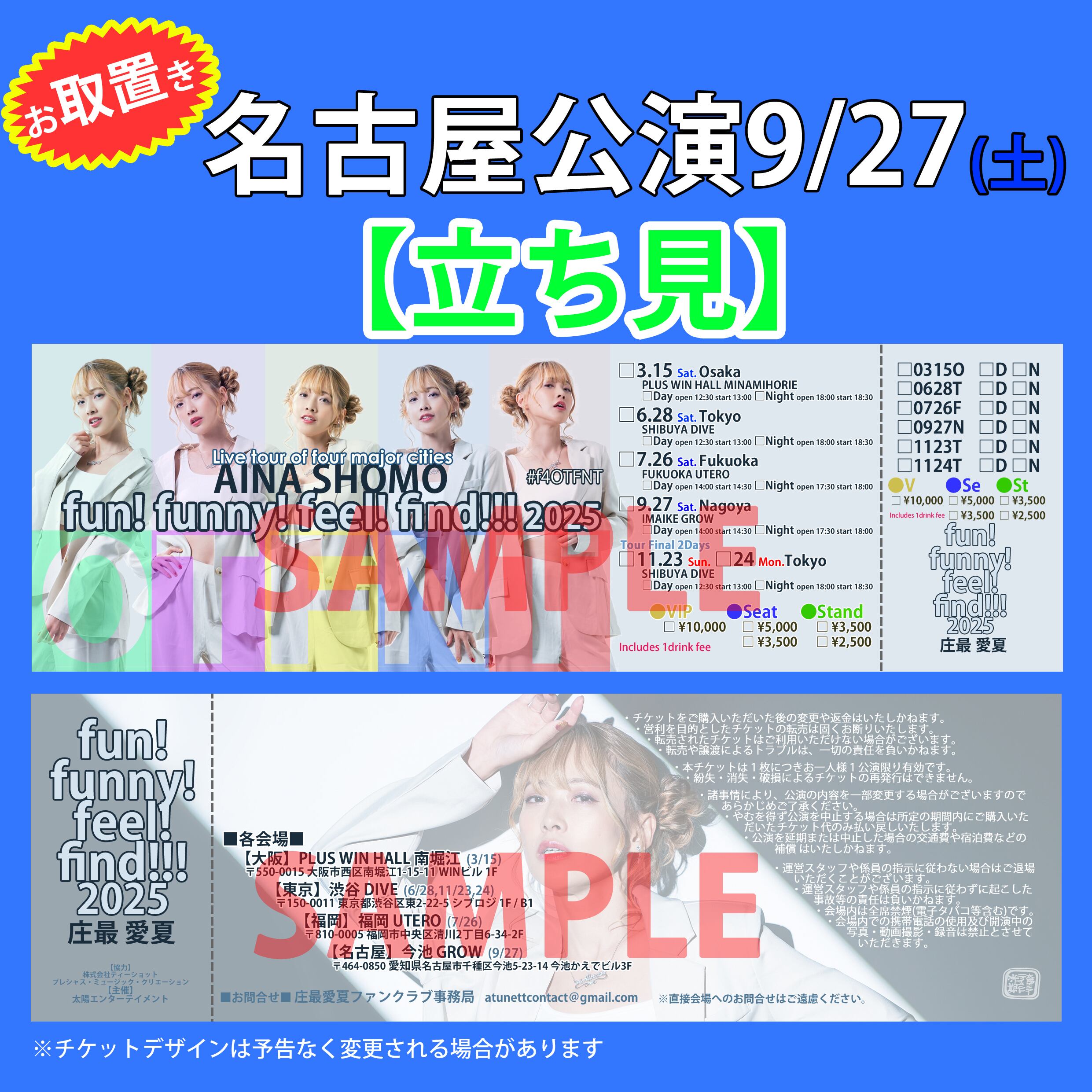 ※お取り置き【立ち見】fun! funny! feel! find!!! 2025 9/27(土)名古屋公演チケット